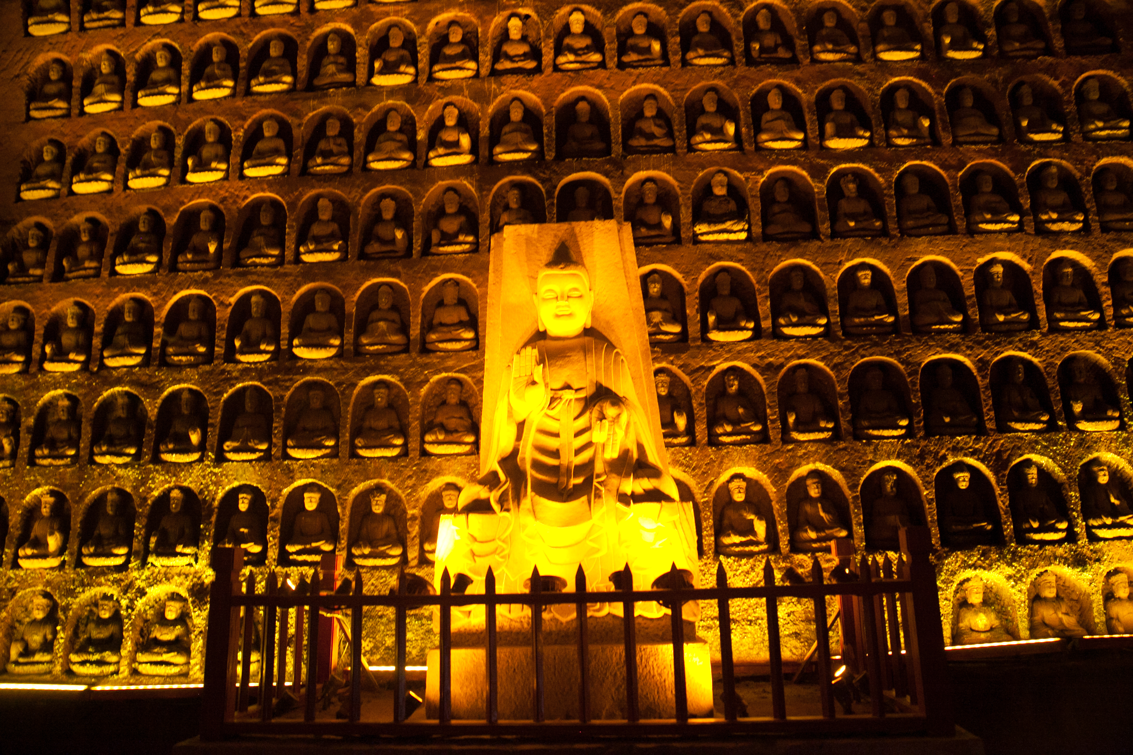宝藏门和五重塔同框,宝藏门的门上也挂有一个大红灯笼,另外还有两只巨型草鞋,五重塔的最顶层是圣佛舍利,里面供奉着释迦牟尼佛的舍利子。
