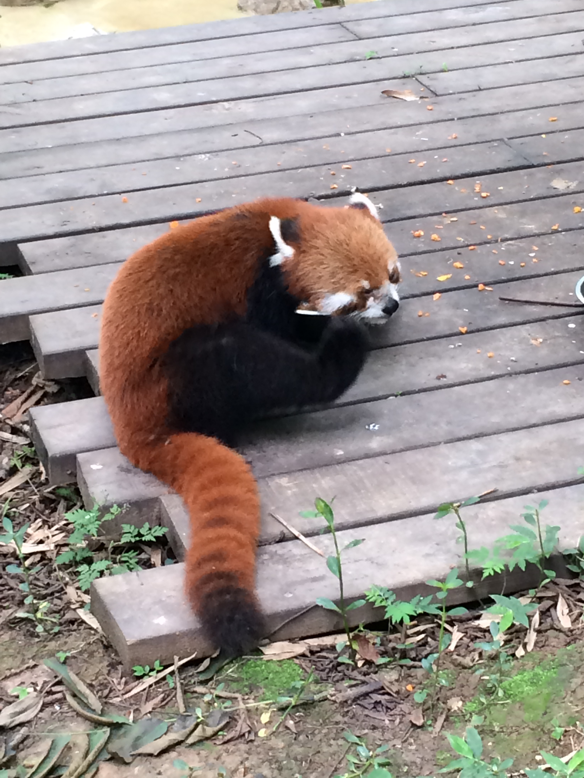在大石公园里等了一段时间,也没见任何可以看到富士山山顶的迹象,于是决定放弃,坐红色观光车回河口湖中心,在回程路上,我们发现突然能看到山头了,小伙伴们一阵惊喜,利马跳下车,卡到了勉强可见的富士山,后果就是观光车开走了,暴雨来临了,大家伙都淋了一场雨。