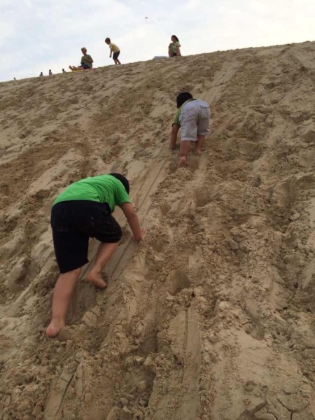 最后傍晚时分去了Jockey Ridge State Park.这个可以说是小朋友那天最喜欢的部分了,爬山丘,滑沙,放风筝,在沙丘上追逐嬉戏,到公园关门了还不愿走,说第二天还要来。