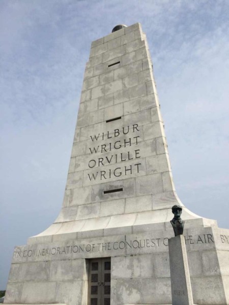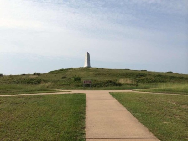 Wright Brother National Monument. 莱特兄弟第一次试飞载人滑翔机的地方,纪念馆里有当年滑翔机的复制品。莱特兄弟纪念碑建在一个山丘上,可以走到上面往下看风景,哥哥在这里又收获一枚junior ranger badge
