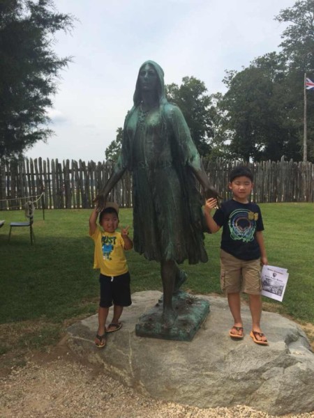 第三天,我们去了位于Virginia州的美国历史三角区Williamsburg, James Town和York Town.说实话对这里比较失望,跟我们之前去过的Charleston, Savannah比都差多了,甚至感觉不如St. Augustine.我们先去了James Town, 今天的ranger倒是非常不错,我认认真真从头听到结束,长了不少历史知识,老大也跟着一起听了,不懂英文的外婆只能带着捣蛋鬼弟弟到处逛逛。下午的Williamsburg,我们没有买票,只是在周围随便逛逛,票子实在太贵,娃也不感兴趣,不过我自己也兴趣不大,所以最后把York Town省略了,开车前往下一站 DC.
