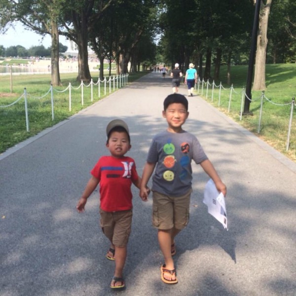 华盛顿特区走马观花一天游,从白宫出发到林肯纪念堂,到华盛顿纪念碑,再到博物馆,最后瞻仰了一下国会山。小朋友从早上8点出门到8点多回家,一路自己走,虽然最后回来的路程弟弟叫苦连天,一度赖着椅子不肯走了,外加哭诉无数,不过最后还是走走停停的回到了旅馆,不过也有可能跟他穿夹脚鞋有关。
